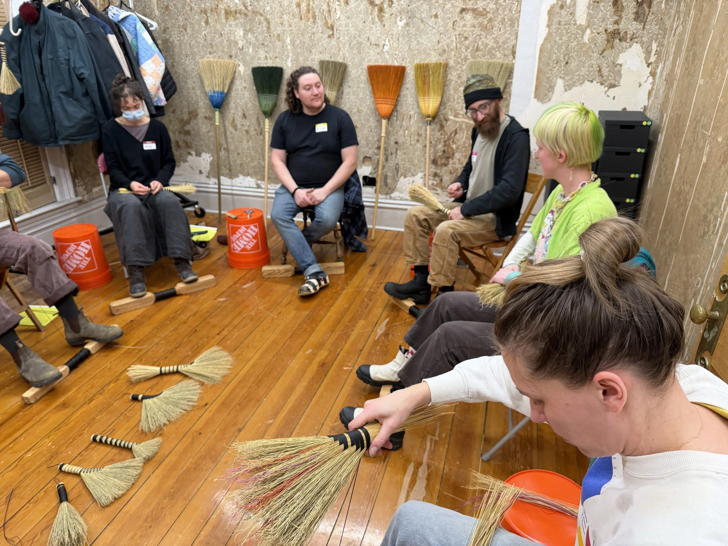 in-progress photo of one of the 6 broom classes taught during The broommaker
