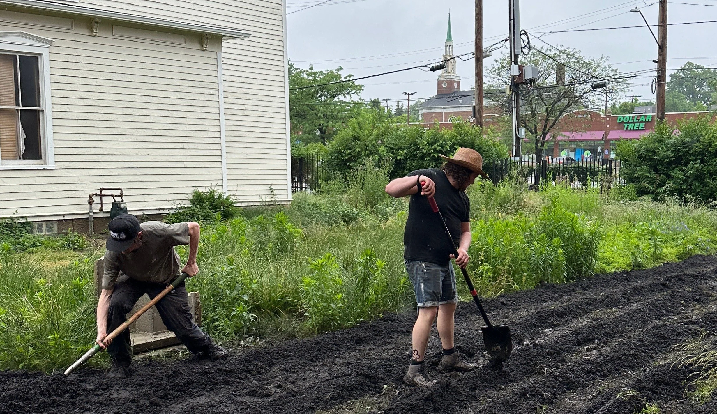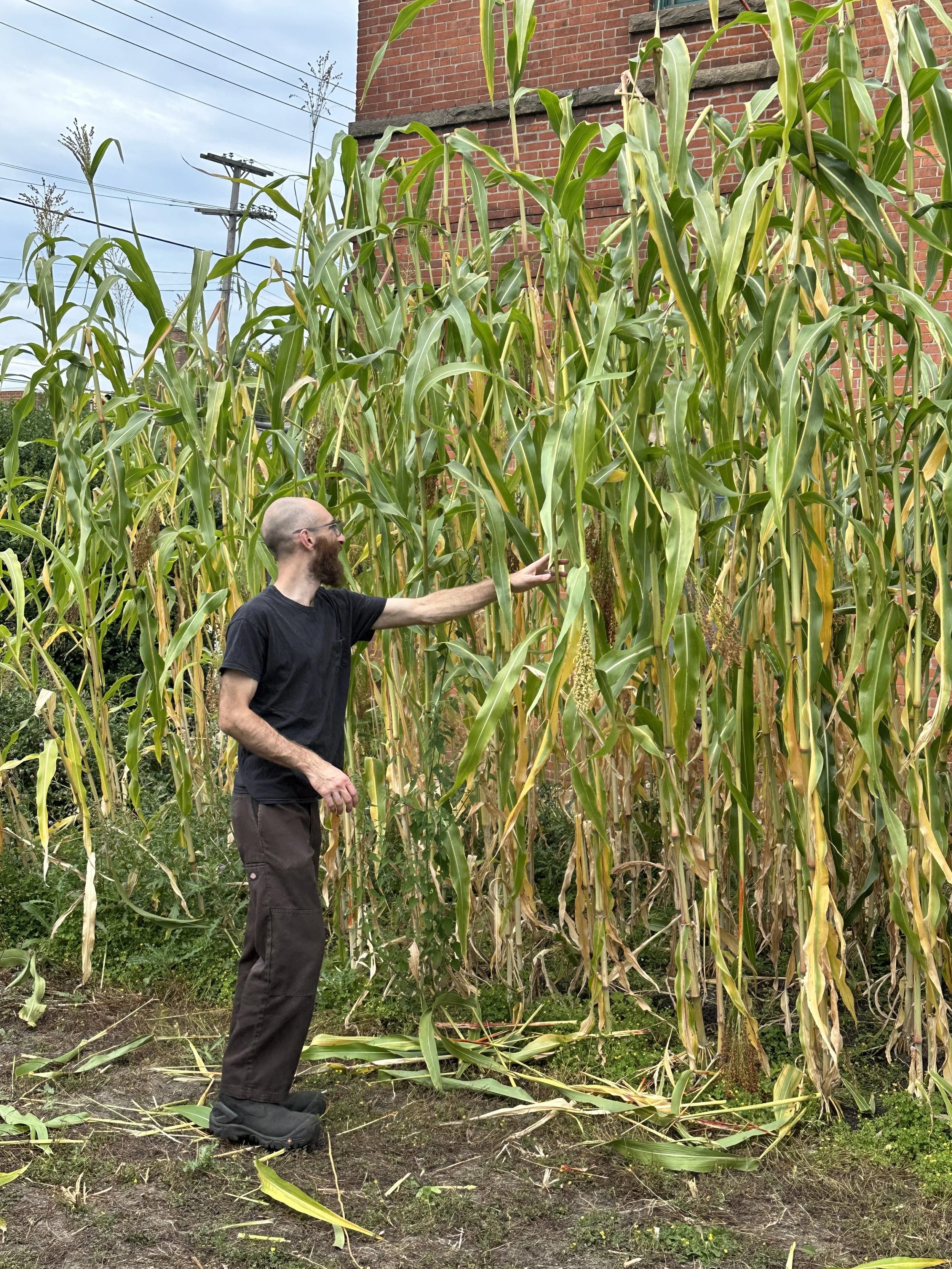 the first stage of the residency required tilling a plot in the back of SHED’s yard and adding nutrient-rich local compost prepare for the growing of broomcorn (sorghum bicolor) which would later be used in workshops and in special “home-grown” brooms